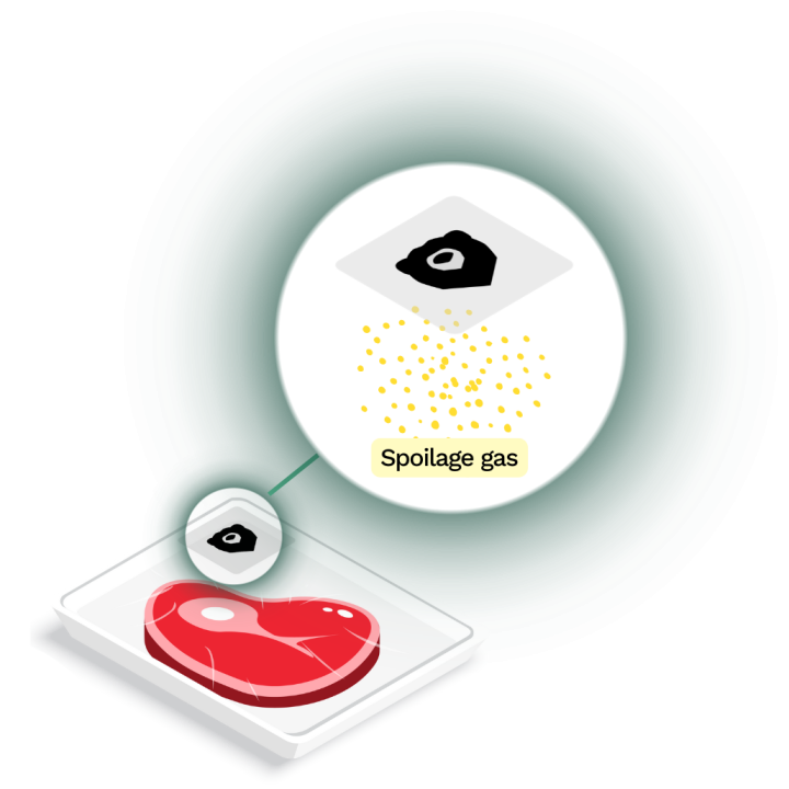 Patented sensors detect spoilage gases inside sealed packs. AI converts raw signals into bacteria counts, odor scores and shelf-life forecasts. All on a live cloud dashboard.